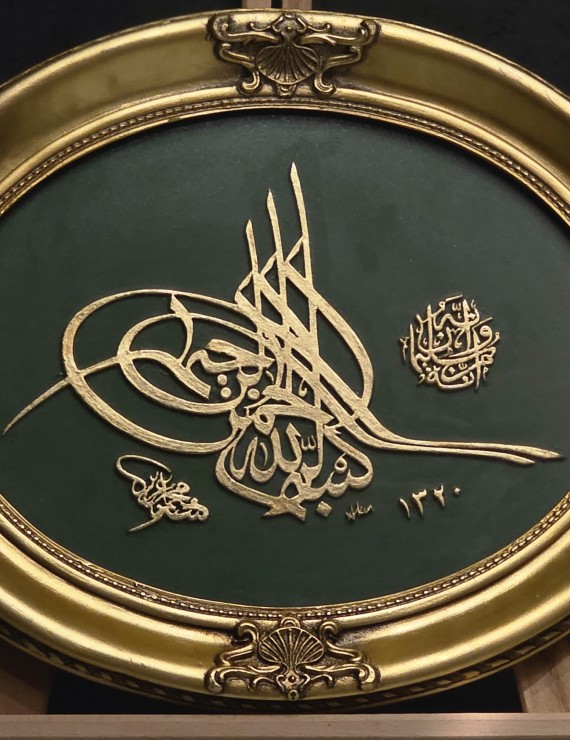 • Yeşil Zemin Üzerine Altın Boyama Naht Besmeli Şerif Tuğra.