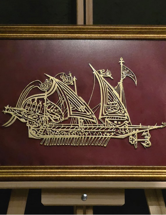 Bu eşsiz sanat eseri, Osmanlı’nın ihtişamlı deniz tarihine gönderme yapan bir kadırga formu ile işlenmiştir. Gemi gövdesinden yelkenlerine kadar her detayı Arapça naht sanatıyla süslenen bu eser, naht (ahşap oyma) tekniğiyle hazırlanmış, üç boyutlu bir estetik sunmaktadır.